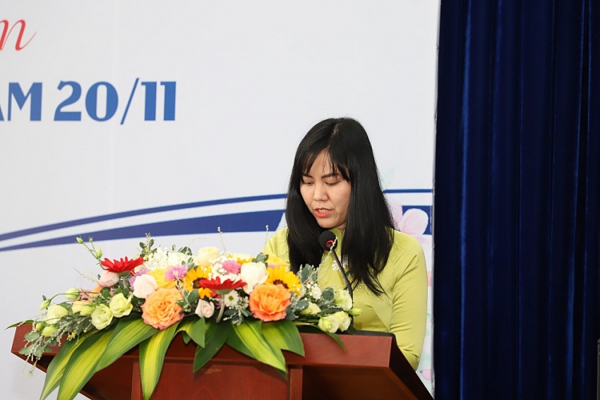 | Bà Lê Thị Lam Trà - Phó Trưởng ban Quản trị nguồn nhân lực thay mặt Tập đoàn chúc mừng các thầy cô PVU nhân Ngày Nhà giáo Việt Nam 20/11. |